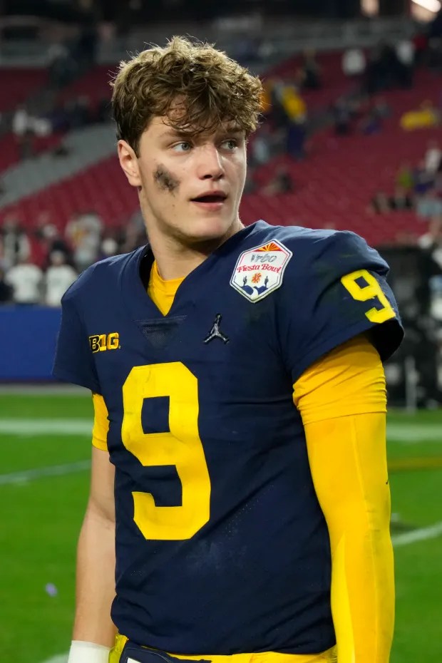 As a true freshman in 2021, McCarthy went 34-59 for 516 yards with 5 TD & 2 INT. Took over as the starter in 2022 was excellent from the jump. Ended up going 26-2 as a starter throwing for 6,226 yards 49 touchdowns with only 11 interceptions across 713 passing attempts completing 68% of his passes. Rushed for over 600 yards with 10 touchdowns on the ground. Rated the #2 Pro Style QB in the country as a Senior in HS. Led Nazareth HS (Ill) to three consecutive state title game berths, winning the state title as a sophomore. Transferred to IMG Academy (Fla) as a Senior. Elite 11 invite. Avid Hockey player throughout his youth. Took over/beat out incumbent QB Cade McNamara entering 2022. Shares many similarities with Jim Harbaugh (personality, leadership style, playing style, upbringing) It was my contention that Jim Harbaugh saw himself in J.J and Jim really would love to coach him at the NFL level as well.